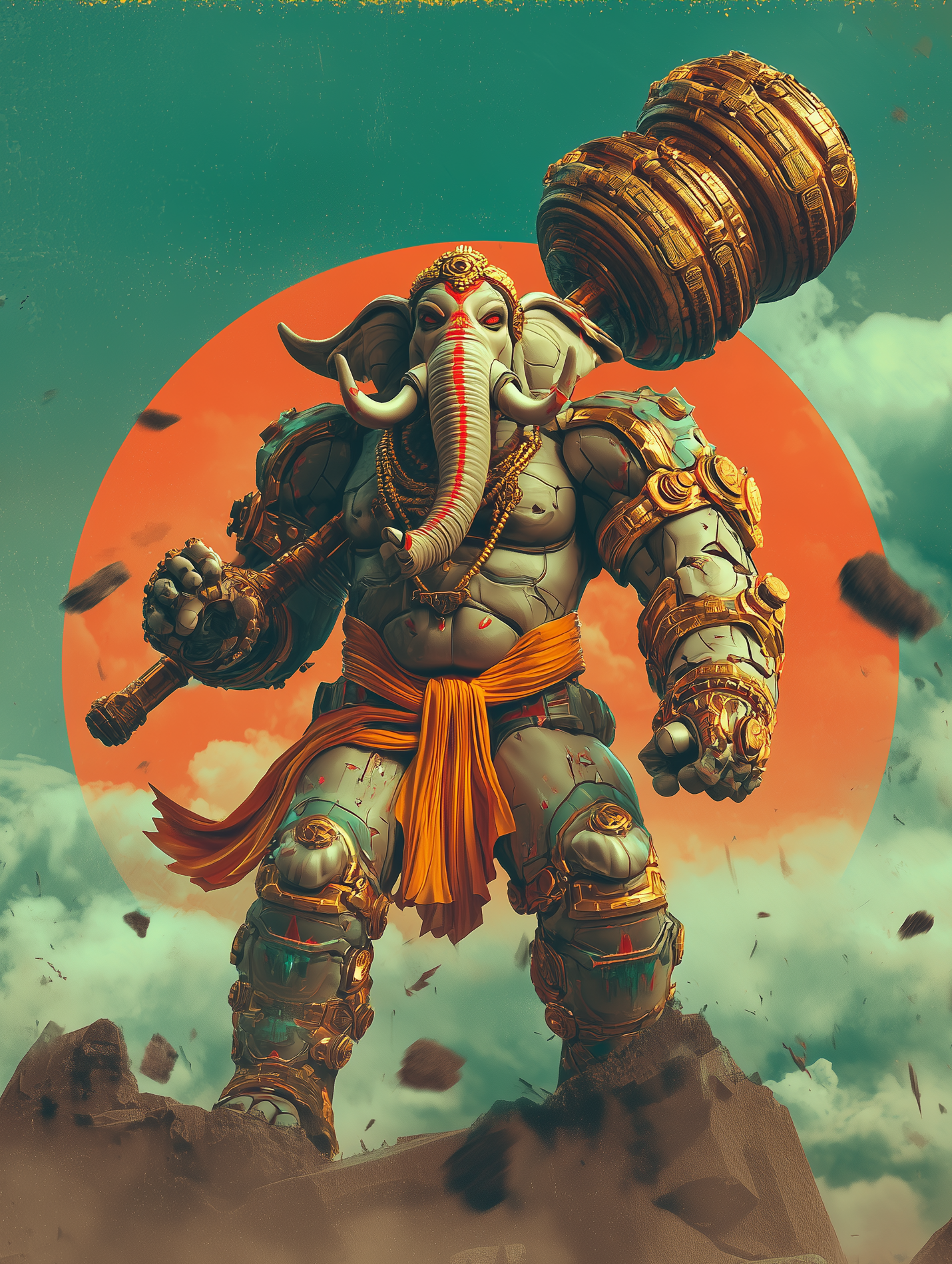 Lord Krishna Dharma Mecha Warrior Poster | Cyberpunk Krishna with White Horse Art Print | Modern Mahabharata Wall Art | Hindu God Futuristic Anime Poster